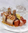 Det vi bli servert julemiddag m/ tilbehør og riskrem til dessert.