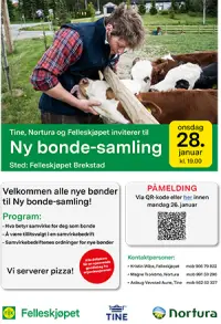 FKA, Tine og Nortura inviterer «nye bønder» til en liten samling på Fosen. Hva som er «ny bonde» blir litt opp til den enkelte å definere, men har du tatt over gården i løpet av de siste årene er du i hvert fall i målgruppa. Dersom neste generasjon skal ta over i nærmeste framtid, håper vi du kan videreformidle invitasjonen til han/hun/dem.